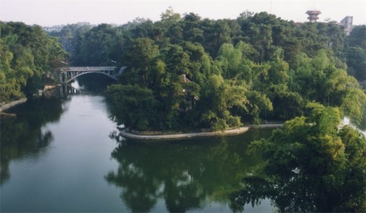 位于中山大學教學樓西面的湖叫隱湖,名字確實好,單一個"隱"字,就足夠人家去遐想了。雖然我沒有去過,但僅憑著它那泓青綠的湖水,那道閃爍著陽光的波痕,那片宛如江南氣息的漂荷,那棵撐起一片別樣天地的大樹,那總無人可至的別致小島,就足以令人心馳神往,令人著迷了。有機會去珠海的話,別忘了去中山大學的隱湖玩玩。