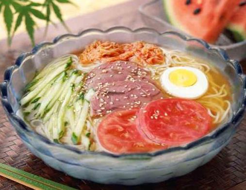 朝鮮冷面,是以蕎面、淀粉、牛肉、辣椒面、胡蘿卜等材料制作的食物,其中尤以蕎麥面冷面為著稱,是馳名國內外的一種深受人們喜歡的朝鮮族傳統食品。