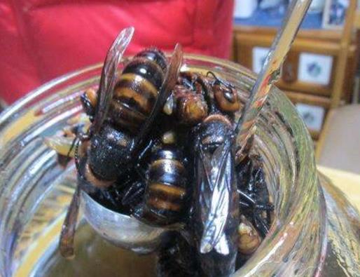日本大黃蜂是一種毒性極強的蜂類動物,然而,還是有人愿意以身犯險,即使挨上幾蜇也要想方設法捉到它們,為的是釀一種特殊的shouchuu酒(類似于伏加特)。這種看著就沒有食欲的發酵黃蜂shouchuu酒呈現出一種爛泥巴的顏色,而且聞起來有點像腐尸散發的氣味。