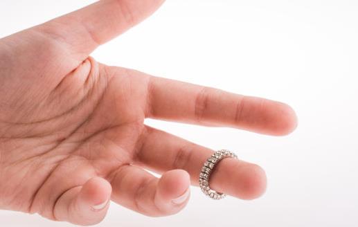 小指: 小指傳達的是一種媚惑性感的訊息,戒指戴在其上將會有意想不到的事發(fā)生,特別推薦給直覺敏銳、從事流行時尚相關工作者。 戴戒指是愛的語言。戒指一般戴在左手(戴右手做事不太方便) 按照我國的習慣,訂婚戒一般戴在左手的中指,結婚戒指戴在左手的無名指;若是未婚姑娘。應戴在右手的中指或無名指,否則,就會令許多追求者望而卻步了。