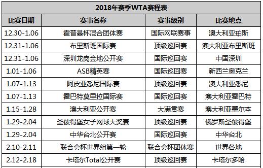 2018年WTA比賽賽程表 2018年WTA有哪些重要賽事安排