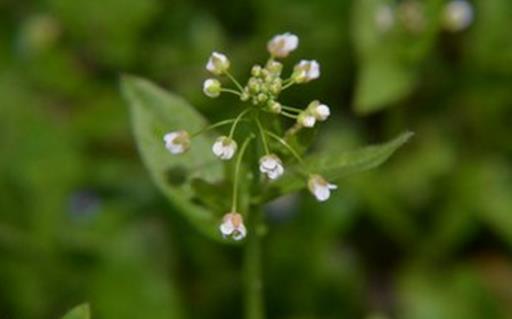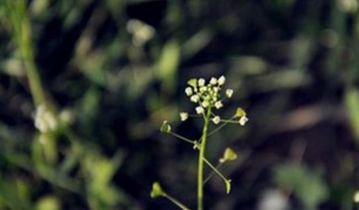 薺菜花開,有民諺說:“三月三,薺菜當靈丹”。小花梗纖細,易斷;花小,直徑約2.5mm,花瓣4片,白色或淡黃棕色;花序軸下部常有小倒三角形的角果,綠色或黃綠色,長5-8mm,寬4-6mm。氣微清香,味淡。