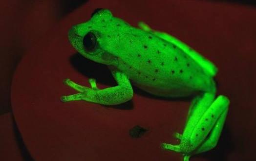 世界上第一種熒光蛙 南美圓點樹蛙折射光線發(fā)出熒光
