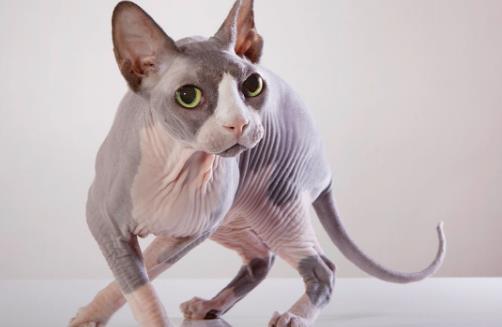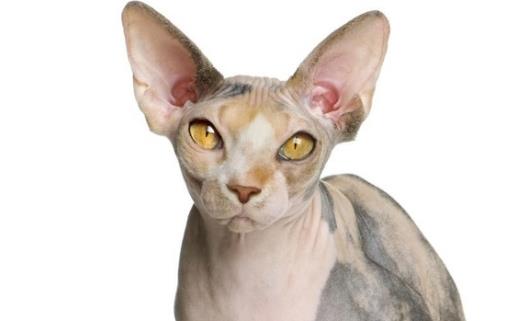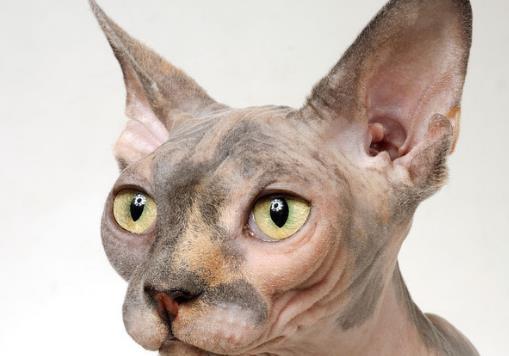 加拿大無毛貓毛發稀疏,在耳、口、鼻、尾前鍛、腳等部位有些又薄又軟的胎毛,其它全身部分均無毛,皮膚皺褶似羚羊皮,有彈性,越年輕的貓的面部越圓,皮膚的皺紋越多;剛生下的小貓身上就有許多皺紋,并布滿了柔細的胎毛,隨著年齡的增長,絨毛僅殘留于頭部、四肢、尾巴和身體的末端部位。