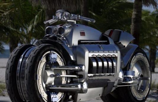 世界上最快的摩托車,時速:676Km/h。道奇戰斧是世界上最快的摩托車,它安上了道奇蝰蛇的8.3升V10引擎和跑車的四個輪子,其最高時速超過600km。