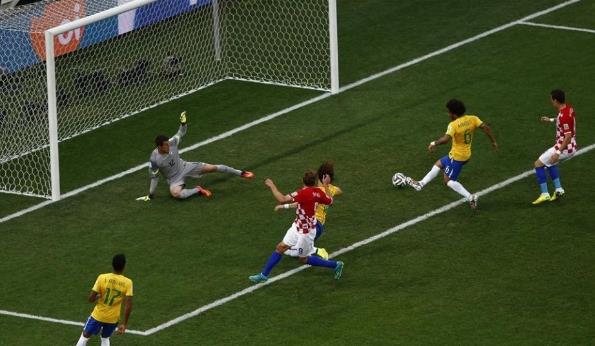 克羅地亞一次看似威脅不大的進攻,卻有了致命的結果。奧利奇左路帶球傳中,中路耶拉維奇射門踢偏,但球卻被巴西后衛馬塞洛碰進了自家大門,1比0!克羅地亞領先了!