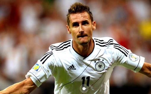 前德國足球運動員米洛斯拉夫·克洛澤為德國隊效力13年,這位最佳射手曾代表德國隊4次出戰世界杯賽,共計打入16球(2002年韓日世界杯5球、2006年德國世界杯5球、2010年南非世界杯4球和2014年巴西世界杯2球)。他幫助球隊贏得1個冠軍、1個亞軍和2個季軍,收獲了個人世界杯金銀銅靴。