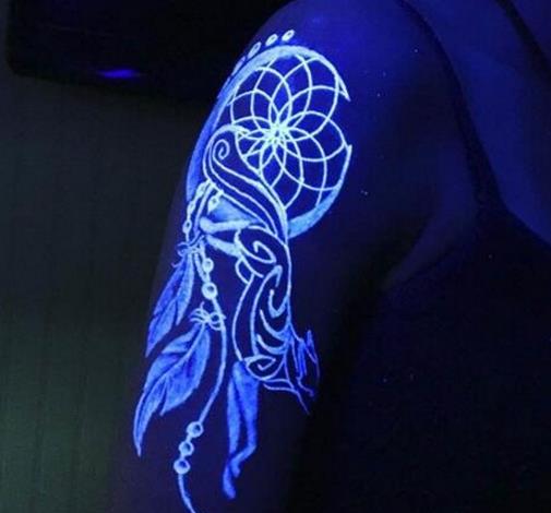 隱形紋身是將色料刺入皮膚中,形成永久的圖案,但是這種圖案在白天的時候并不會顯現,而是在晚上,紫外線光的照射下才會顯現,也就是說,當你白天工作或者在家里的時候,別人是不知道你有紋身的,但是你進入酒吧、俱樂部等場所,就能夠顯現出你帥氣的紋身。