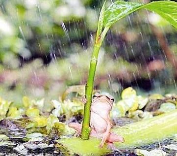 印度尼西亞一只樹(shù)蛙被拍到在傾盆大雨中抱著一片葉子躲雨,更聰明的是,它懂得根據(jù)暴雨方向調(diào)整“雨傘”朝向。2013年7月,印尼攝影師拍到的這組照片在微博上熱傳。據(jù)外媒報(bào)道,印度尼西亞一只樹(shù)蛙被拍到在傾盆大雨中抱著一片葉子躲雨,更聰明的是,它懂得根據(jù)暴雨方向調(diào)整“雨傘”朝向。這組照片在微博上熱傳。