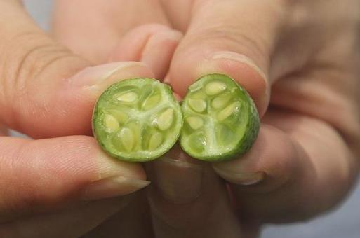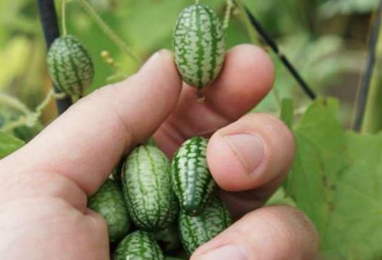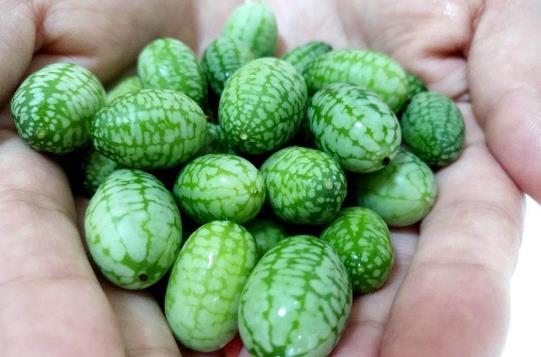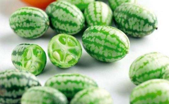 拇指西瓜也被稱之為佩普基諾,這種西瓜非常小,和一般圣女果一樣大。單看外形,這種西瓜就是普通西瓜的縮小版,但其實(shí)它的味道與西瓜相差很多。它的口感像黃瓜般爽脆,味道酸中帶甜,有點(diǎn)類似香蕉、酸橙的香味。非常的鮮美,是一種很不錯(cuò)的水果。