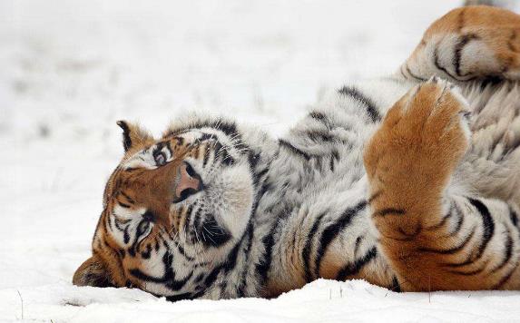 西伯利亞虎又稱(chēng)東北虎,是虎的亞種之一。是現(xiàn)存體重最大的肉食性貓科動(dòng)物,其中雄性體長(zhǎng)可達(dá)2.8米左右,尾長(zhǎng)約1米,最大體重達(dá)到350千克以上。野生西伯利亞虎體色夏毛棕黃色,冬毛淡黃色。背部和體側(cè)具有多條橫列黑色窄條紋,通常2條靠近呈柳葉狀。頭大而圓,前額上的數(shù)條黑色橫紋,中間常被串通,極似“王”字,故有“叢林之王”之美稱(chēng)。棲居于森林、灌木和野草叢生的地帶。獨(dú)居,無(wú)定居,具領(lǐng)域行為,活動(dòng)范圍可達(dá)100平方公里以上。夜行性,感官敏銳,性?xún)疵停袆?dòng)迅捷,善游泳,善爬樹(shù),很少襲擊人類(lèi)。東北虎主要捕食鹿、羊、野豬等大中型哺乳動(dòng)物,也食小型哺乳動(dòng)物和鳥(niǎo)。捕食方式為偷襲。孕期為103至105天,一胎生2至4仔,二至三年生產(chǎn)一次,野生壽命15至17年,最高為20年,人工飼養(yǎng)情況下壽命為20-25年。