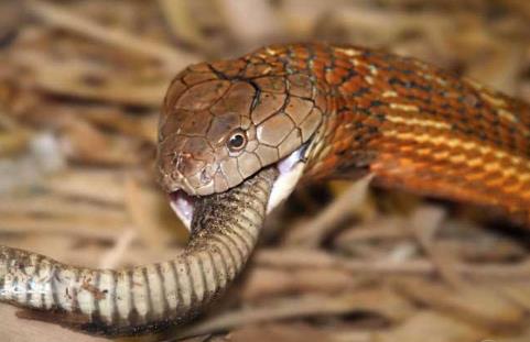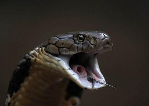 過山峰是一種智商很高的蛇類,它們捕獵其他的蛇,而且能分辨對方是否有毒。在捕食無毒蛇時,眼鏡王蛇并不輕易使用毒液,它會隨便咬上一口不放,任憑獵物掙扎反抗,直到死后再慢慢吞食。在捕食毒蛇時,它則不會輕舉妄動,而是不斷挑釁,當對方終被激怒向它發起進攻時,它會機警地躲閃,最后獵物身心疲憊、無心戀戰時,它看準機會,一口咬住獵物頭頸并釋放毒液將其殺死。