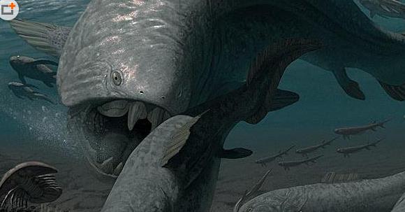 鄧氏魚(Dunkleosteus),是一種活于古生代泥盆紀(jì)時期(約3.6億至4.3億年前)的大型古生物,身體長約11米,重量可達(dá)6噸,咬合力可達(dá)5噸,被視為泥盆紀(jì)時代最大的(海洋)獵食者,同時也是寒武紀(jì)到泥盆紀(jì)時期出現(xiàn)過的最大的食肉硬骨魚類,其主要獵物是有硬殼保護(hù)的魚類及無脊椎動物,是當(dāng)時的頂級掠食物動物。根據(jù)考古學(xué)家以及動物學(xué)家的相關(guān)研究結(jié)果表明,鄧氏魚在當(dāng)時可謂稱得上是海底界的扛把子。