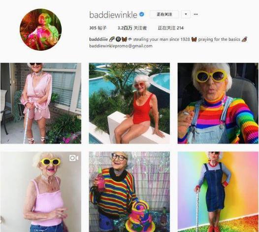 baddiewinkle這個賬號是IG上百萬粉絲的一個網紅賬號,這是Baddie Winkle的孫女為祖母創建了賬號,這位今年89歲的老奶奶,來自美國肯塔基州的Williamstown,當初只是為了好玩在網上發了些搞怪的照片,誰知道一下就火了,目前已經在IG上面收獲了320萬的粉絲,可以說是美國數一數二的網紅了。