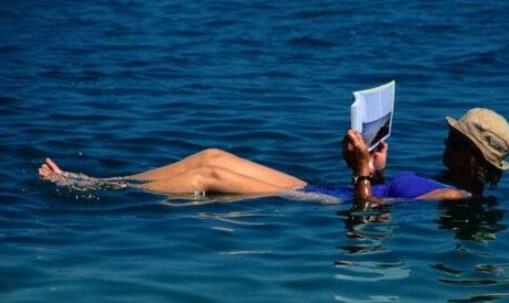 其一,死海一帶氣溫很高,夏季平均可達(dá)34C°,最高達(dá)51C°,冬季也有14—17C°。氣溫越高,蒸發(fā)量就越大。其二,這里干燥少雨,年均降雨量只有50毫米,而蒸發(fā)量是1400毫米左右。晴天多,日照強(qiáng),雨水少,補(bǔ)充的水量,微乎其微,死海變得越來越“稠”——入不敷出,沉淀在湖底的礦物質(zhì)越來越多,咸度越來越大。于是,經(jīng)年累月,便形成了世界上第一咸的咸水湖——死海。