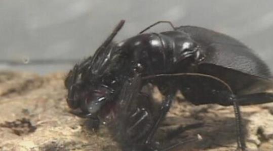 大王虎甲是全球最大的食肉甲蟲,被稱為“非洲地面暴君”,以巨型、食肉而聞名,世界上最大的甲蟲是泰坦甲蟲。大王虎甲有一對鐮刀狀的上顎,內有大齒,肥厚寬大的身軀上長著一層黑亮的外殼,看起來非常堅硬,再加上6條外伸的長腿,仿佛是從深淵爬出來的怪蟲。