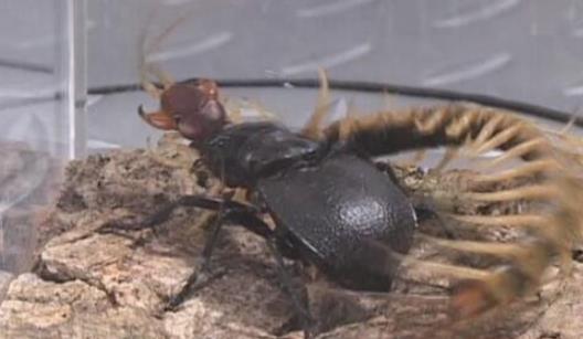 少棘蜈蚣中的最大品種,名列世界十大巨人蜈蚣之列,雙方對峙,沖繩巨人蜈蚣在體型上占有明顯優勢。大王虎甲很聰明,直攻蜈蚣頭部,蜈蚣被壓制,連24cm的巨人蜈蚣也被大王虎甲KO。