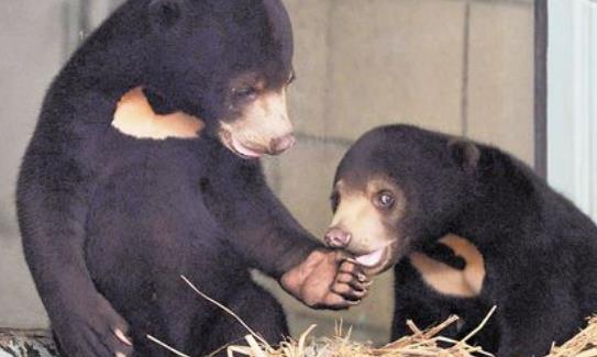 新生的熊寶寶十分柔弱,體重只有300克左右,全身也沒有毛發(fā),它們會和母親一起生活到成年才會獨立生活。年幼的馬來熊是很有趣的玩物,但長大后會變得很危險。一般壽命大約19-25年,圈養(yǎng)情況下,它們的最長壽命大概有24年。