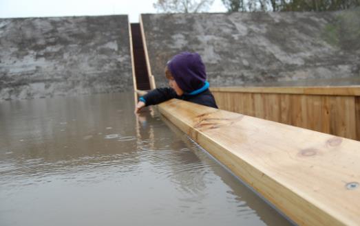 ▼你沒看錯,行人就站在水面以下,橋的圍欄只比水面稍稍高了一點點,而人行步道遠遠低于河面!