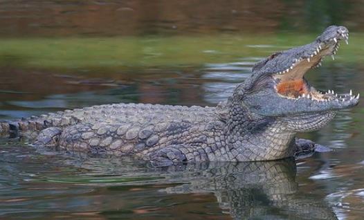灣鱷又名河口鱷、咸水鱷,是現(xiàn)存世界上最大的爬行動物,成體一般長3至5米,最長可達7米以上,最大者體重超過1.6噸。這種鱷背部呈深橄欖色或棕色,與所有鱷魚相比最大的不同在于它們的頸背上沒有大鱗片。