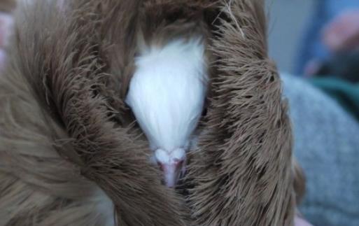 雅各賓鴿在外形上最顯著的特點莫過于它們頭部周圍有一圈長且厚密的羽毛,這圈羽毛將它們小巧的腦袋包裹在中間,讓雅各賓鴿看起來好像穿上了一件時髦的高領皮草大衣。華美的外表再配上它們高貴的站姿,雅各賓鴿整個貴族范十足。