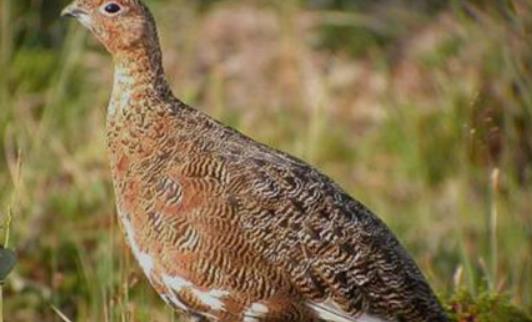 雷鳥屬鳥綱、雞形目、松雞科。又名“雪雞”,拉丁學(xué)名為Lagopusmutus。主要分布于北極苔原凍土帶和高山的樹線以上,在中國僅見于新疆西北部的阿爾泰山地區(qū)。雷鳥是一種中小型鳥類,體長36~40厘米。夏季時,上體呈黑褐色,并間有黃棕色斑紋,羽端具有白色的狹邊。喉部及胸部為沙黃色,并有黑褐色橫斑。下體呈白色,尾部為黑褐色,先端有白色狹邊。腳及趾均覆蓋有白羽。冬季時,雌、雄鳥均為白色,但尾部呈黑色。自嘴角至眼后有一條寬的黑色過眼紋。