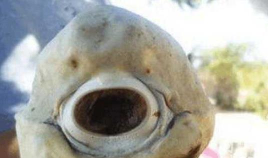 據(jù)2011年10月18日?qǐng)?bào)道,美國(guó)加州海岸一名漁民在捕撈時(shí),意外發(fā)現(xiàn)了一條“獨(dú)眼”小鯊魚(yú)。這條鯊魚(yú)不僅只有一只眼睛,還患有白化癥,通體雪白,讓人不禁疑慮它是否是偽造的。只鯊魚(yú)是據(jù)說(shuō)是在墨西哥海Cortez 區(qū)域打撈上來(lái)的一只牛鯊,是當(dāng)?shù)貪O民從一頭雌牛鯊(Bull shark)的腹中取出的牛鯊胎兒。身長(zhǎng)22英寸(約合56厘米),只有一只眼睛,長(zhǎng)在頭部前部。由于互聯(lián)網(wǎng)上PS橫行,僅憑借照片很難判定這玩意是否是真的。后來(lái)經(jīng)鯊魚(yú)研究者證實(shí),這條“獨(dú)眼”鯊魚(yú)的確是天生如此。鯊魚(yú)專(zhuān)家Felipe Galván Magana說(shuō):“這玩意不是假冒的,確實(shí)是一只畸形的胎兒;熙忯~(yú)胎兒的案例非常稀少,目前世界上也僅有不到50例”。 包括人類(lèi)在內(nèi)的一些動(dòng)物都會(huì)出現(xiàn)獨(dú)眼畸形。在母體外捕獲獨(dú)眼鯊魚(yú)還是第一次。獨(dú)眼鯊魚(yú)是美國(guó)“國(guó)家地理新聞”網(wǎng)站編輯評(píng)出的2011年十大詭異動(dòng)物之一。