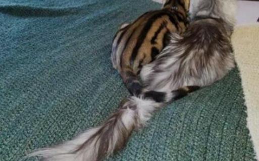Cygnus是一只生活在美國底特律的緬因貓,兩歲時尾長17.58英寸,約為44.66厘米。憑借這條長尾巴,Cygnus成為了世界上尾巴最長的貓,并得到了吉尼斯記錄認證。最令人驚訝的是,Cygnus的尾巴并沒有顯示停止生長的跡象,每隔一個月左右大約都會長1.3厘米。