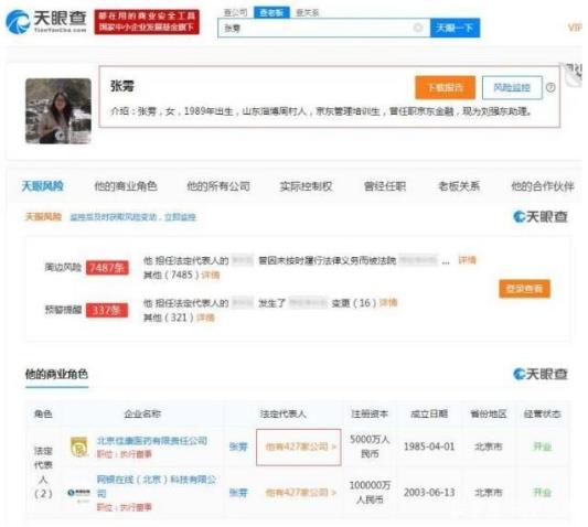 大家對這個女助理很好奇,于是查了下她的詳細資料。不查不知道,一查嚇一跳。天眼查數據顯示,其名下共 427 家企業,對 291 家企業有實際控制權,包括京東物流、京東大藥房、京東云等多地分公司。而劉強東名下共 405 家企業, 2019 年以來,在劉強東新增的 13 家企業中,均由張雱擔任法定代表人。