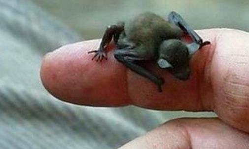 世界上最小的蝙蝠,是泰國的大黃蜂蝙蝠,它比小指還小,翅膀伸展開僅8厘米。這些屬于食蟲類蝙蝠,以空中飛行的小昆蟲為食。名為Kitti’shog–nosed的蝙蝠,成長不到3厘米,僅僅重2克,所以它叫大黃蜂蝙蝠。這種蝙蝠在1974年才被發現。可以像蜂鳥一樣在空中盤旋飛行,它們像所有蝙蝠一樣喜歡棲息在洞穴環境中,喜歡以昆蟲為食。大黃蜂蝙蝠也叫泰國豬鼻蝙蝠,它們比蜂鳥大不了多少。它們身體呈黑色或褐色,頭頂有一對非常大的耳朵,它們的鼻子很有特點,平且有點向上,近似豬鼻,所以得名豬鼻蝙蝠。
