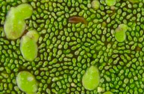 無根萍為種子植物中體型最小的一種,無根無葉,葉狀體近球形,長約1.3-1.5mm,寬不到1mm。多數先端產生芽體繁殖。浮生在靜水池沼的水面。花小,雌雄同株,生于葉狀體表面,無佛焰苞。不常開花。果實球形。生長適溫為22~32攝氏度,低于20攝氏度或高于35攝氏度生長緩慢。蕪萍是出芽繁殖,從開始岀芽到種子脫離母體為1個繁殖周期,在水溫30攝氏度時歷時3~4小時,20攝氏度時8~12小時。飄浮水面或懸浮,細小如沙,為世界上最小的種子植物。葉狀體卵狀半球形,單1或2代連在一起,直徑0.5-1.5毫米,上面綠色,扁平,具多數氣孔,背面明顯凸起,淡綠色,表皮細胞五至六邊形;無葉脈及根。