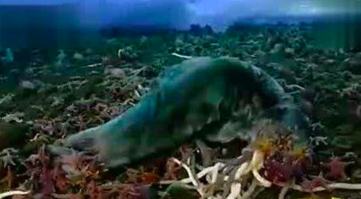 海星的進(jìn)食速度更慢一些,它們?cè)诔詵|西時(shí),要把胃從空腔里吐出來(lái)。海星把胃抵在海豹的皮膚上,利用分泌的消化液分解海豹的組織。海膽也趕來(lái),希望能分一杯羹。跟巨蟲(chóng)一樣,它們也是五顏六色。這些生物不僅有時(shí)會(huì)用外殼偽裝自己,而且壽命可達(dá)40年。由于南極水溫很低,生活在冰層下的很多生物生長(zhǎng)十分緩慢。不過(guò)它們的壽命很長(zhǎng),而且體積可以長(zhǎng)到很大。
