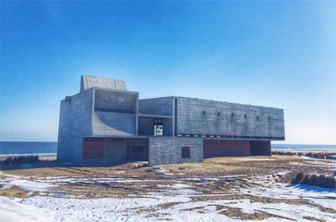 這座圖書館叫三聯書店海邊公益圖書館,建筑師叫董功。第一次來到這里,他便被一種深深的孤寂感震住。望不到邊際的大海,是一個極其空曠的背景,每一塊石頭,都有著強烈的存在感。董功希望,這個圖書館也能夠像一塊石頭,堅硬地存在于這片海灘上。