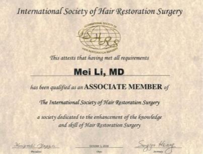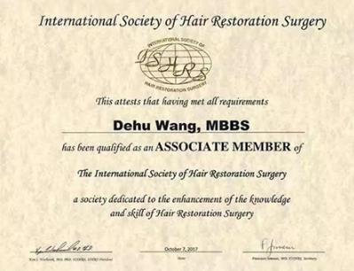 系中國大陸地區首位美國植發外科委員會ABHRS認證醫師,同時是國際植發協會ISHRS會員(大陸僅數人)、亞洲毛發修復外科協會AAHRS會員、中國整形美容協會毛發醫學分會會員。2017年、2018年,先后代表萊森植發出席了國際植發協會奧蘭多手術研討會(OLSW)和世界手術研討會(WLSW),是大陸醫療機構、醫師首次受邀參加該系列會議。