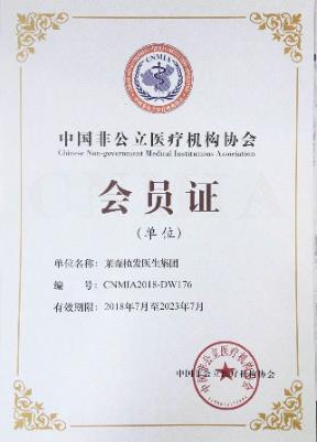 萊森植發醫生集團-中國非公立醫療機構協會證書
