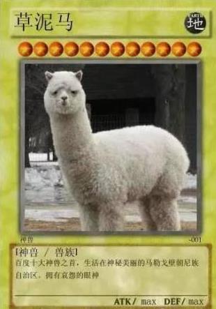 網友杜撰的十大神獸之一,居于網絡十大神獸之首,地位無比顯赫!其原型為原產于南美洲的小羊駝(學名Vicugna pacos,英文名Alpaca),起源于百度魔獸世界吧。包括草泥馬在內的十大神獸最初發布于百度百科,之后迅速躥紅,在聊天室、論壇中廣為流傳。關于“草泥馬”的視頻、卡通和商品也成為世界范圍關注的對象。