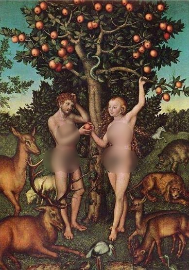 起初二人赤身露體,并不羞恥;吃過禁果后,他們害怕被看見赤身露體,便拿無花果樹的葉子作衣服。