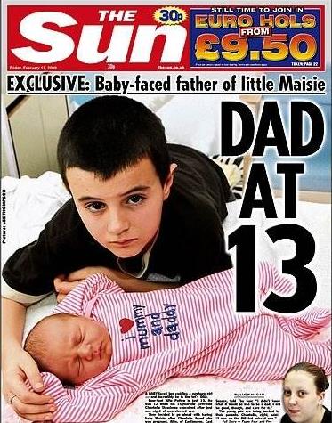 據英國媒體13日報道,英國13歲小男孩艾爾菲·帕頓和15歲女友仙黛爾·斯迪德曼偷吃禁果后,導致女友懷孕。2月9日,仙黛爾產下一名女嬰,13歲艾爾菲從此當上了爸爸。