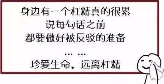 杠精這么多,行走江湖總會碰到幾個,杠精老是抬杠,或許這樣他們才能夠刷足自己的存在感,通過打壓別人的觀點,找到自認為的優越感,這么一想,其實杠精們也是很可悲的。