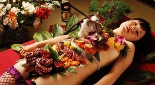 在日本風俗行業里經常引誘顧客的“女體盛”是否是一種藝術,是表演藝術還是飲食文化?這是一個值得探討的問題。有日本人認為,“女體盛”是不惜以摧殘藝伎身心健康為代價的“盛宴”,完全是為了迎合一些富有男人畸形的貪欲,上述的種種遭遇就說明了這一點。對此,持贊成意見的人卻有另一套理論,他們認為飲食不僅要滿足一種口腹之欲,還要有文化體驗,凡是吃東西,食品真正的滋味只占一半,另一半則是由食品所代表的文化內涵、對進食者的特殊意義和進食過程中的心理體驗所構成。所以,“女體盛”作為日本飲食文化的一種特色,其影響仍然不減。