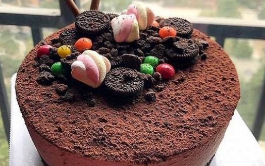 7、從冰箱取出做好的蛋糕,最后再在上面裝飾。可根據個人喜好進行裝飾。